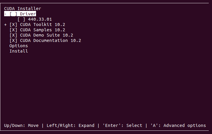 $ sudo sh cuda_10.2.89_440.33.01_linux.run
