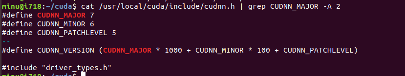 ~$ cat /usr/local/cuda/include/cudnn.h | grep CUDNN_MAJOR -A 2