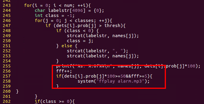 사진은 인식률이 50기준입니다. 테스트 해볼 때 캡쳐한 거라 참고만 해주세요.258번째 줄을 *100>=80으로 변경하시면 인식률 80이상일 때 울립니다.
