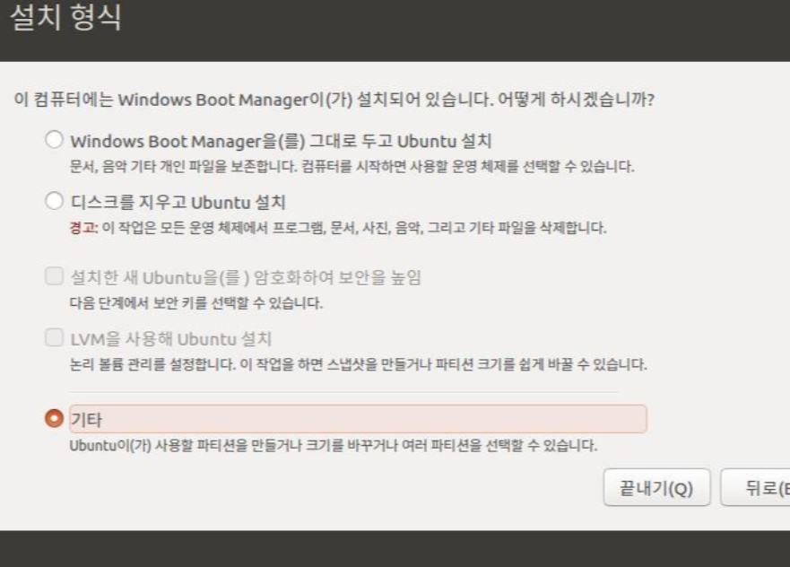 4. 이제부터 ubuntu 체험판으로 파티션을 나누도록 하겠습니다.